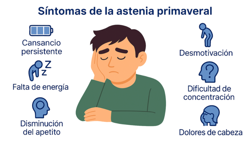 Aunque la intensidad varía según la persona, la astenia primaveral se manifiesta típicamente con varios de los siguientes síntomas (6):